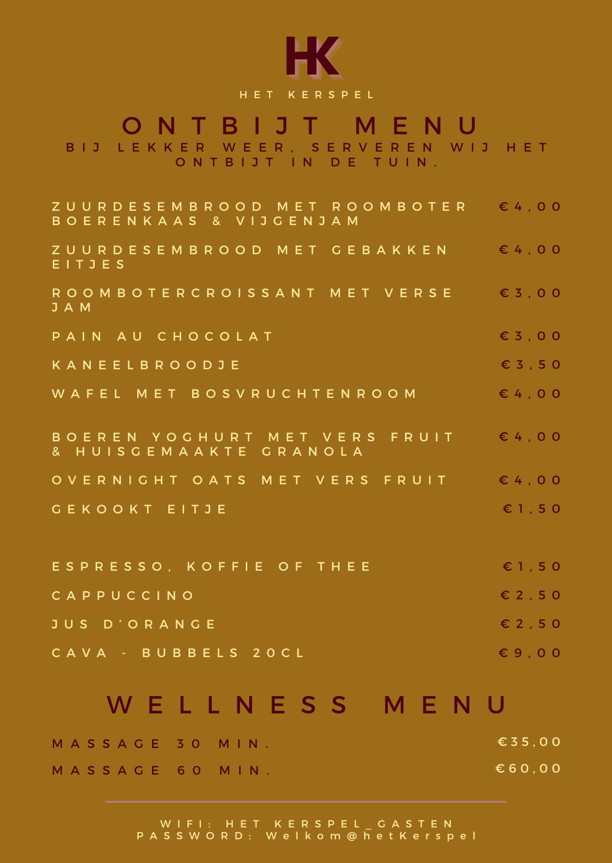 Breakfast and wellness menu